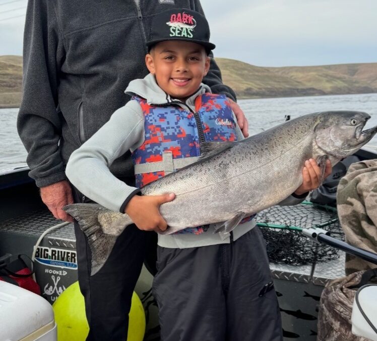 10 Year Old Doubles Up on Chinook by WreckTangle | Jun 16, 2025 | Chinook, Reports 10 year old Jay caught this beautiful spring chinook, then we doubled up and completed his limit for the day.